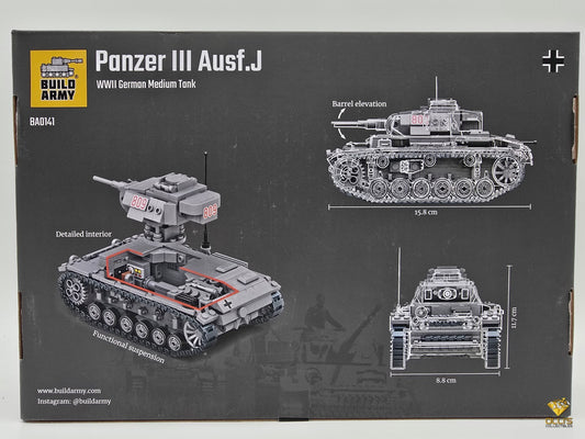 Build Army Panzer III Ausf.J WW II Klemmbausteine 755 Steine Modell 2.Weltkrieg
